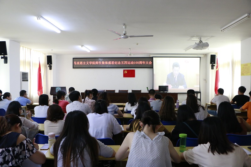 4月30日上午,太阳成集团tyc122ccvip组织师生在社科楼A315集体观看了“纪念五四运动100周年大会”的直播实况。公司党委书记段捷频、副书记张井富、研究生辅导员张君成与全体在校研究生及部分本科生一起观看直播。