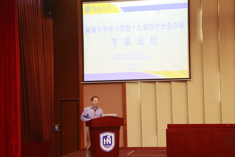 中共海南省委党校王和平表示,举办学习贯彻十九届四中全会决议专家论坛,是响应海南社科界学习贯彻落实党的十九届四中全会精神的重要举措。党的十九届四中全会对推进国家治理体系和治理能力现代化做出了重大部署,加强对于十九届四中全会精神的学习研究,更加深入地聚焦和研究海南自贸区(自贸港)建设问题,有助于进一步推进海南的建设与发展。