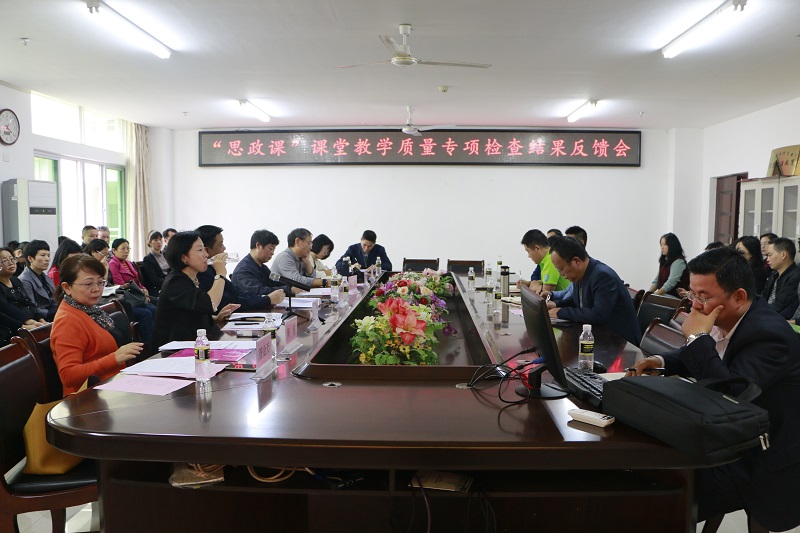 12月10日下午,太阳成集团tyc122ccvip在社科楼A-311顺利召开“思政课”课堂教学质量专项检查结果反馈会。副董事长胡新文、教学质量评估中心郭立萍主任、教学质量评估中心副主任周兰愉、教学督导代表周星、霍世清,评估中心工作人员符金万、陈雨菡,公司副经理王善、副经理吴朝阳,党委副书记张井富以及全体马院教职工出席会议。会议由副经理吴朝阳主持。