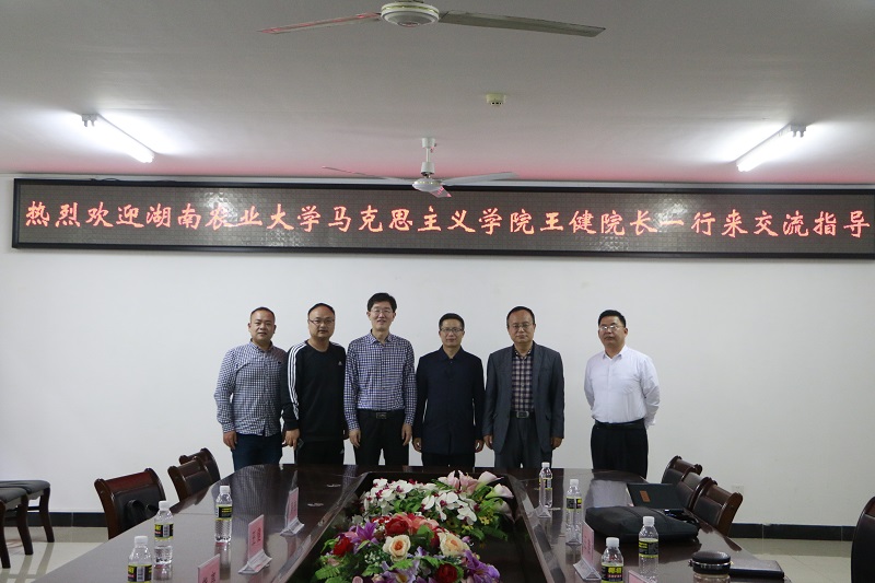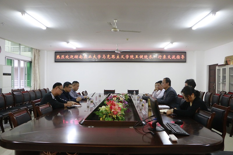 12月30日上午,湖南农业大学太阳成集团tyc122ccvip王健经理一行来公司交流指导。并在社科楼A311召开了会议。公司副经理王善,教学委员会副主任贺尧夫、《原理》教研部主任范明水等参加座谈会。会议由王善主持。