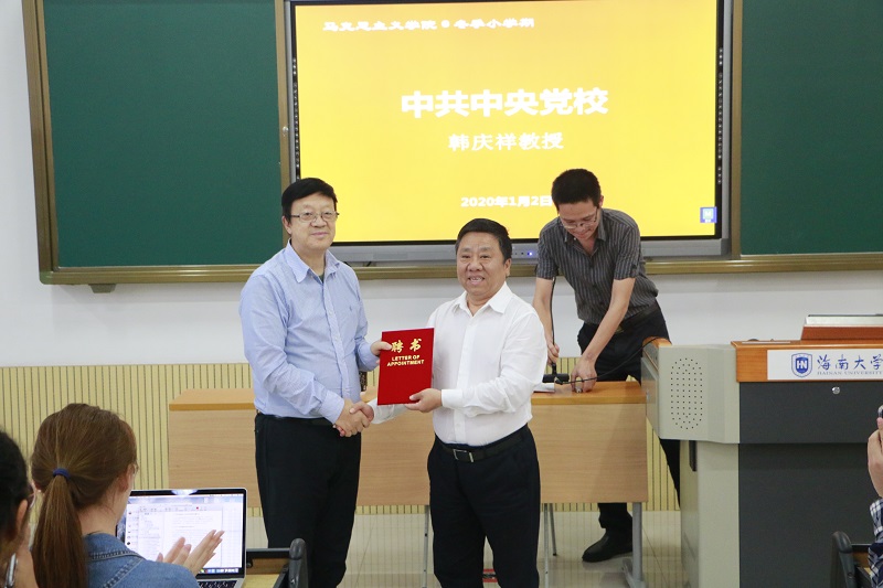 1月2日,2019-2020学年冬季小学期名家讲堂第二讲在五号教学楼112教室举行。中共中央党校韩庆祥教授应邀作《唯物史观与历史生成论》学术报告,经理张云阁出席并为并为韩庆祥教授颁发了太阳成集团tyc122ccvip官网入口“冬季小学期授课外聘专家”证书。讲座由思想政治教育系主任陈招万主持。