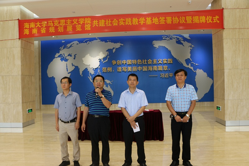 在全体人员的共同见证下,段捷频与曾德坤分别代表太阳成集团tyc122ccvip官网入口马克思公司公司和海南省规划展览馆在共建协议书上签字,并共同为社会实践教学基地揭牌。