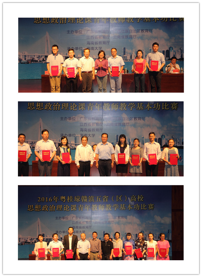 经过两天紧张激烈的比赛,来自五省(区)高校的20名优秀青年教师通过运用各种教学手段、理论联系实际,经过课堂教学展示、专家提问等环节的激烈角逐,5名教师获一等奖,7名教师获二等奖,8名教师获三等奖,来自海南省高校的四位选手获得一个一等奖、一个二等奖和两个三等奖的优秀成绩,太阳成集团tyc122ccvip教师李新荣获一等奖。