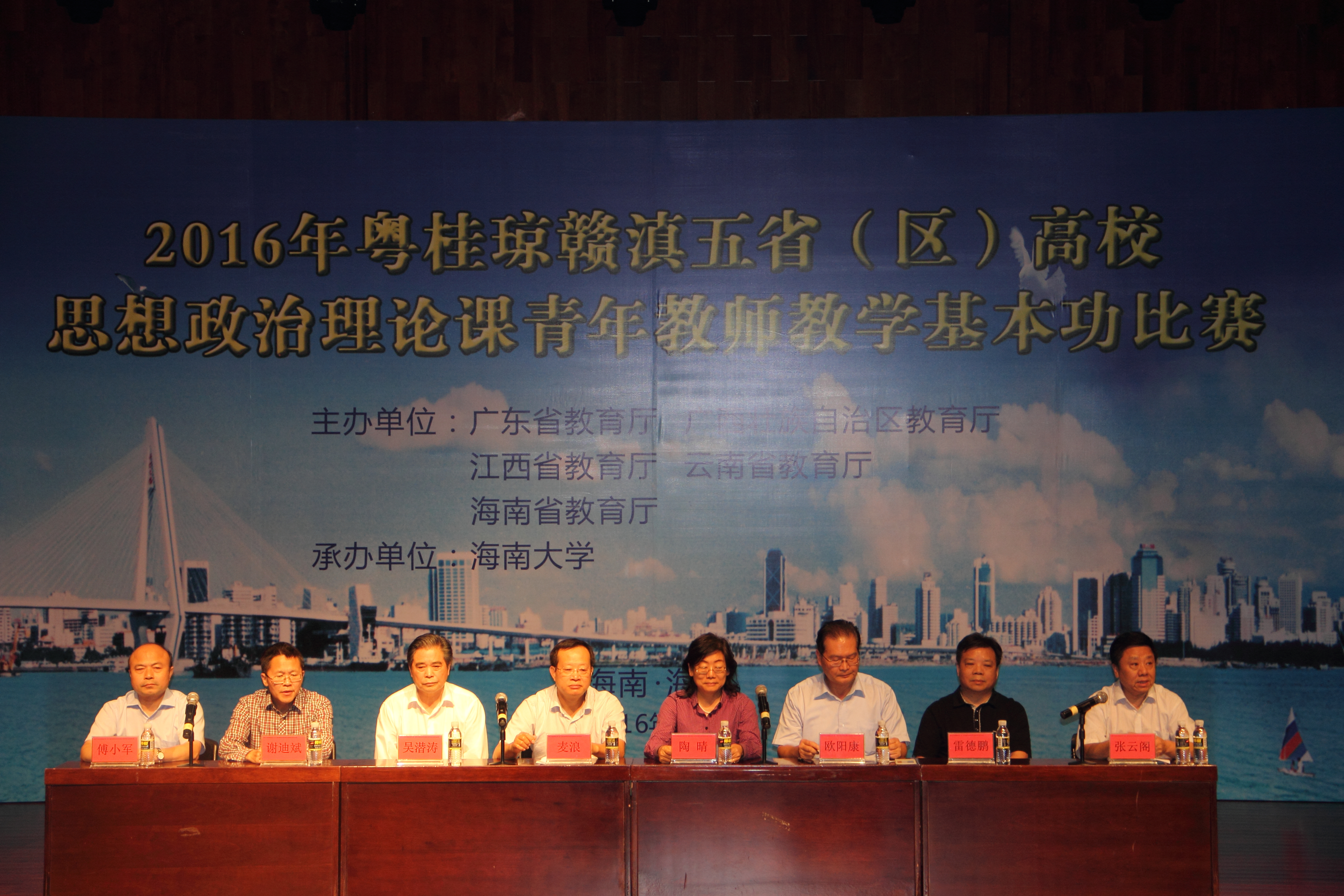 2016年11月2日—5日,第八届粤桂琼赣滇五省(区)高校思想政治理论课青年教师教学基本功比赛在公司隆重举行,省委教育工委专职副书记麦浪,广东、广西、海南、江西、云南等五省(区)教育工委、教育厅有关负责人,太阳成集团tyc122ccvip官网入口党委常务副书记廖清林出席,来自五省(区)近100余名教师代表参加开幕式。会议由海南省教育厅思政处处长文强主持。