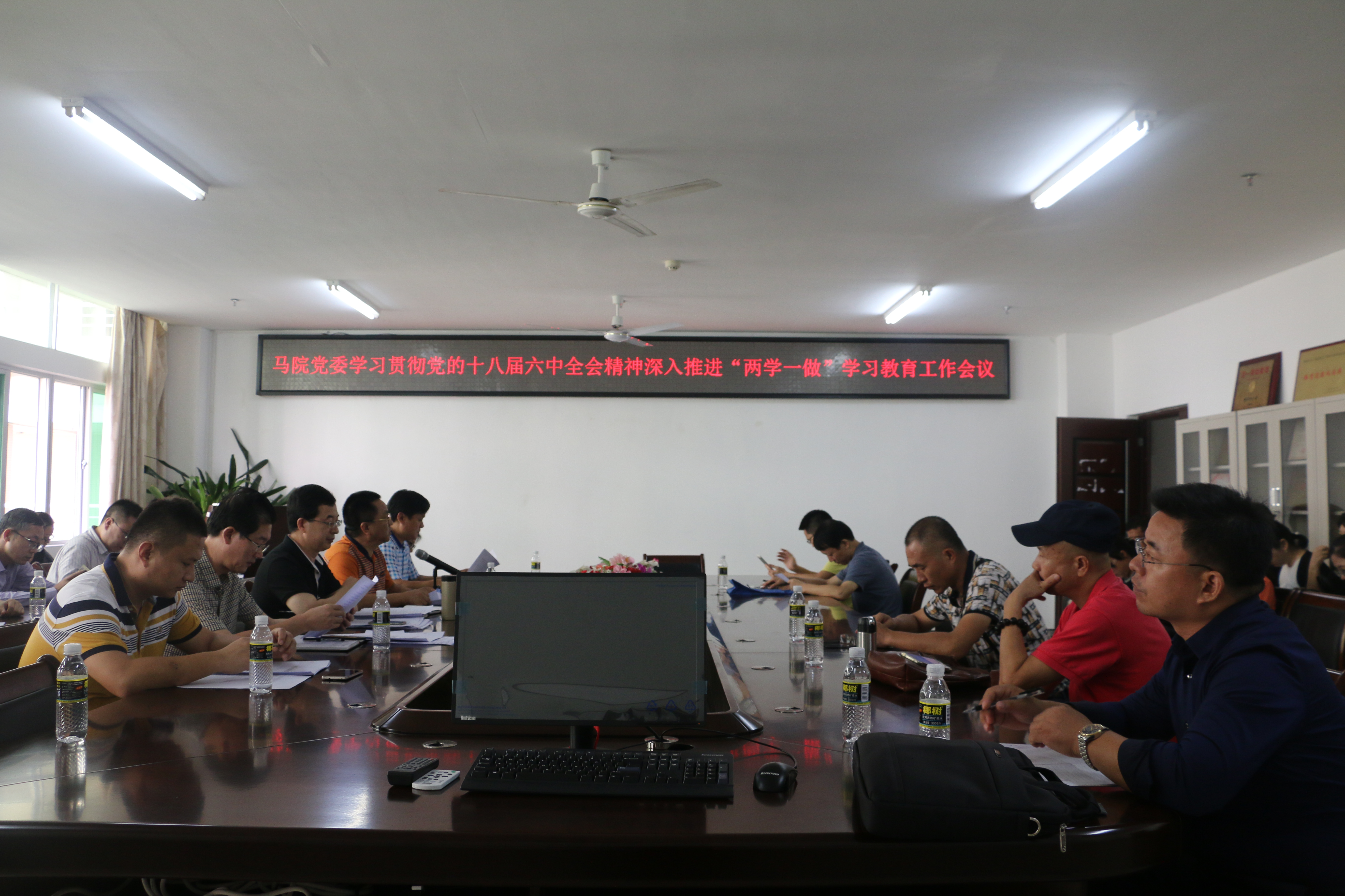 11月22日下午,马克思主义公司党委根据中央精神和公司有关工作部署,在公司会议室召开“学习十八届六中全会精神深入推进‘两学一做’学习教育工作”会议。公司党委书记段捷频、经理李德芳、副经理李辽宁、杨娜出席,全体教师党员参加。会议由段捷频主持。