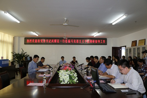 3月13日下午,公司党委书记武耀廷到公司调研指导工作,公司党委统战部部长陈明宝陪同。公司党委书记段捷频、经理李德芳、副经理李辽宁、杨娜,部分教师代表和员工代表参加调研座谈会。会议由段捷频主持。