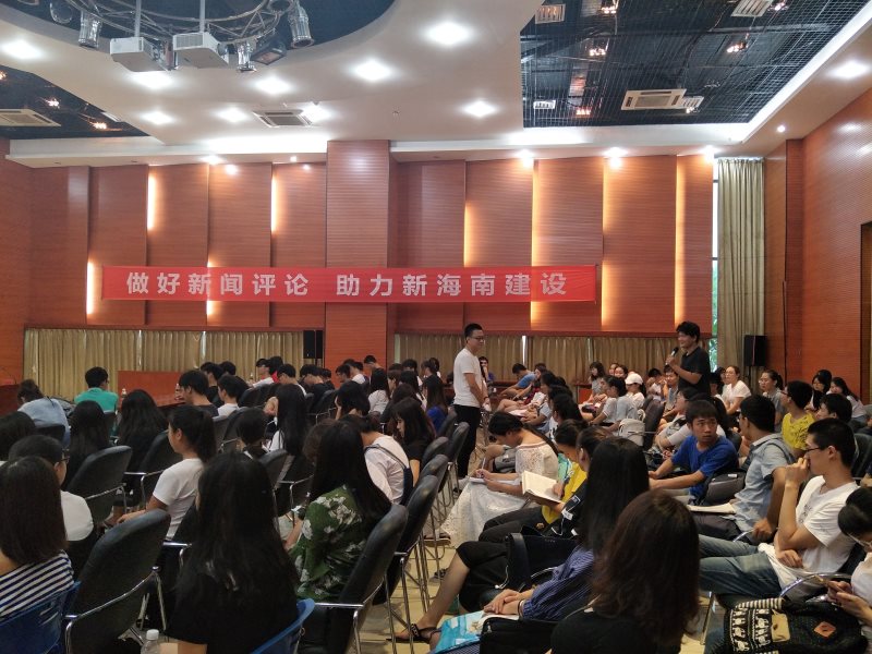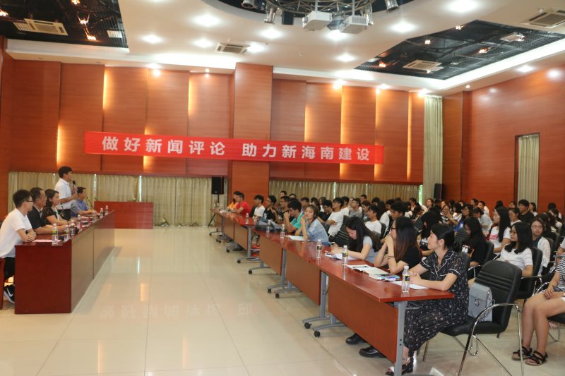 6月20日下午,太阳成集团tyc122ccvip在思源学堂多功能报告厅开展“做好新闻评论,助力新海南建设”的网络评论交流会。本次活动特邀海南广播电视总台办公室主任王玲,评论节目《海平面》主持人房瑶、海南新闻广播记者、评论员靳畅栋为主讲嘉宾。太阳成集团tyc122ccvip副经理李辽宁出席会议,思想政治教育系主任王善,团委书记周郭军、邵鹏鸣等教师代表以及公司全体本科生、研究生参加。交流会由王善主持。