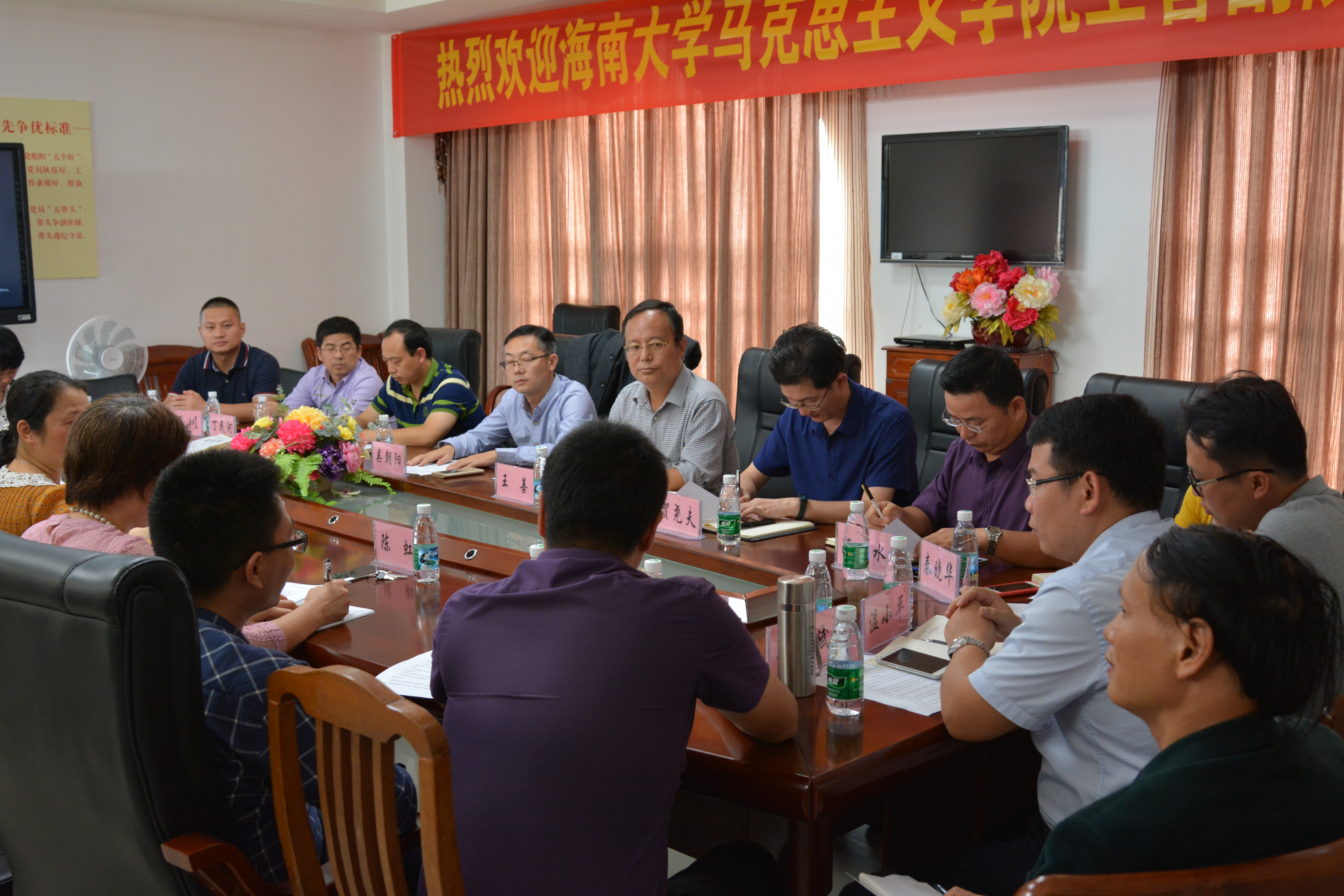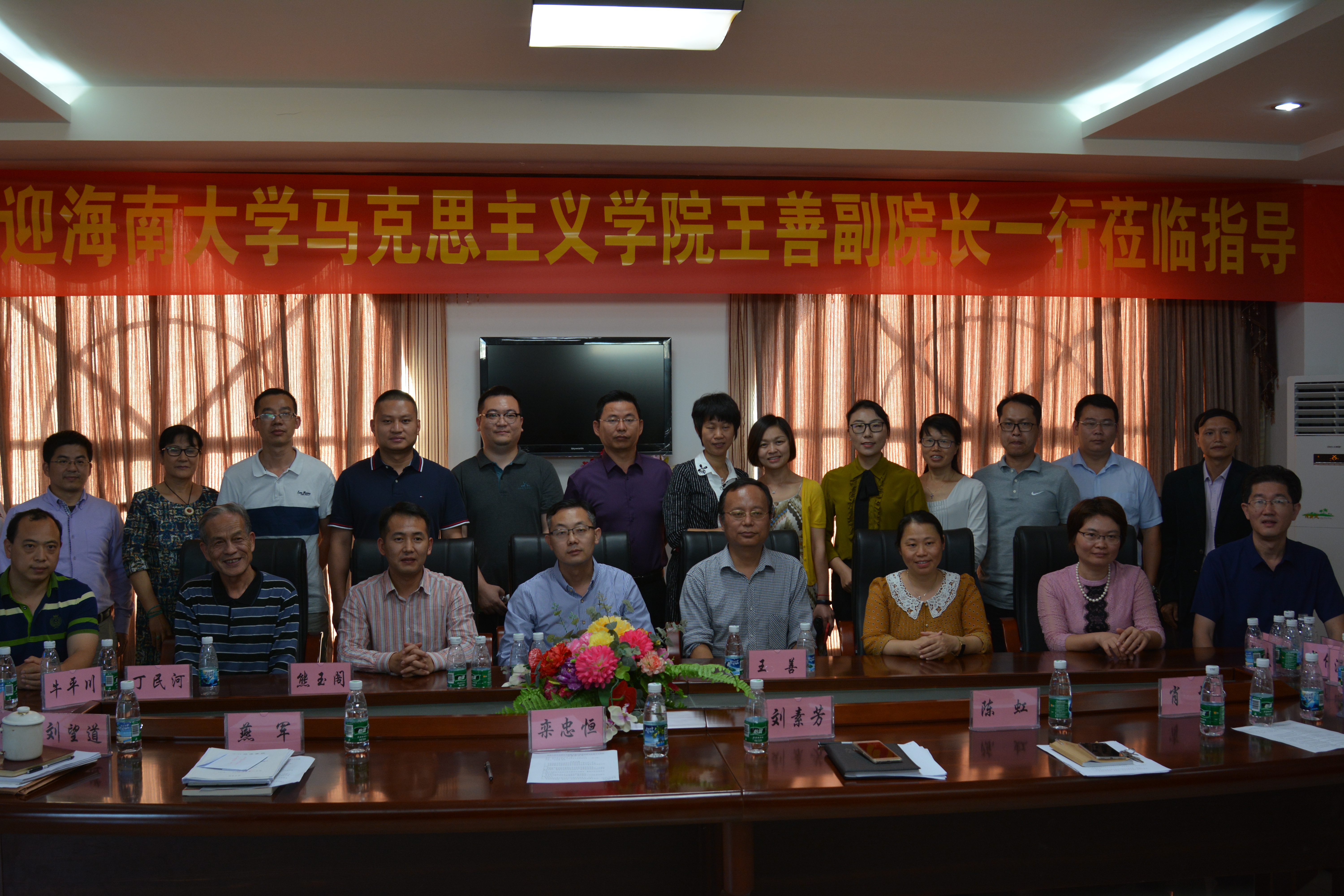 近期,太阳成集团tyc122ccvip副经理王善、教学委员会副主任贺尧夫带领思想政治理论课五个教研部负责人和部分骨干教师等一行14人赴海口经济公司马克思主义院进行教学交流研讨活动。太阳成集团tyc122ccvip官网入口教务处副处长吴朝阳、教务系统负责人熊玉阁、教务科科长丁民河也一同参加了此次活动。