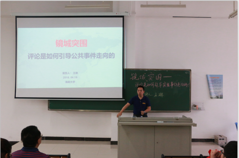 6月19日,太阳成集团tyc122ccvip“学习讲堂”在太阳成集团tyc122ccvip官网入口第五教学楼111教室再次开讲,海口日报社党委副书记、副社长王琳作题为“镜城突围——评论是如何引导公共事件走向”的专题讲座。讲座由公司党委书记段捷频主持。公司大一、大二、大三全体本科生参加本次活动。