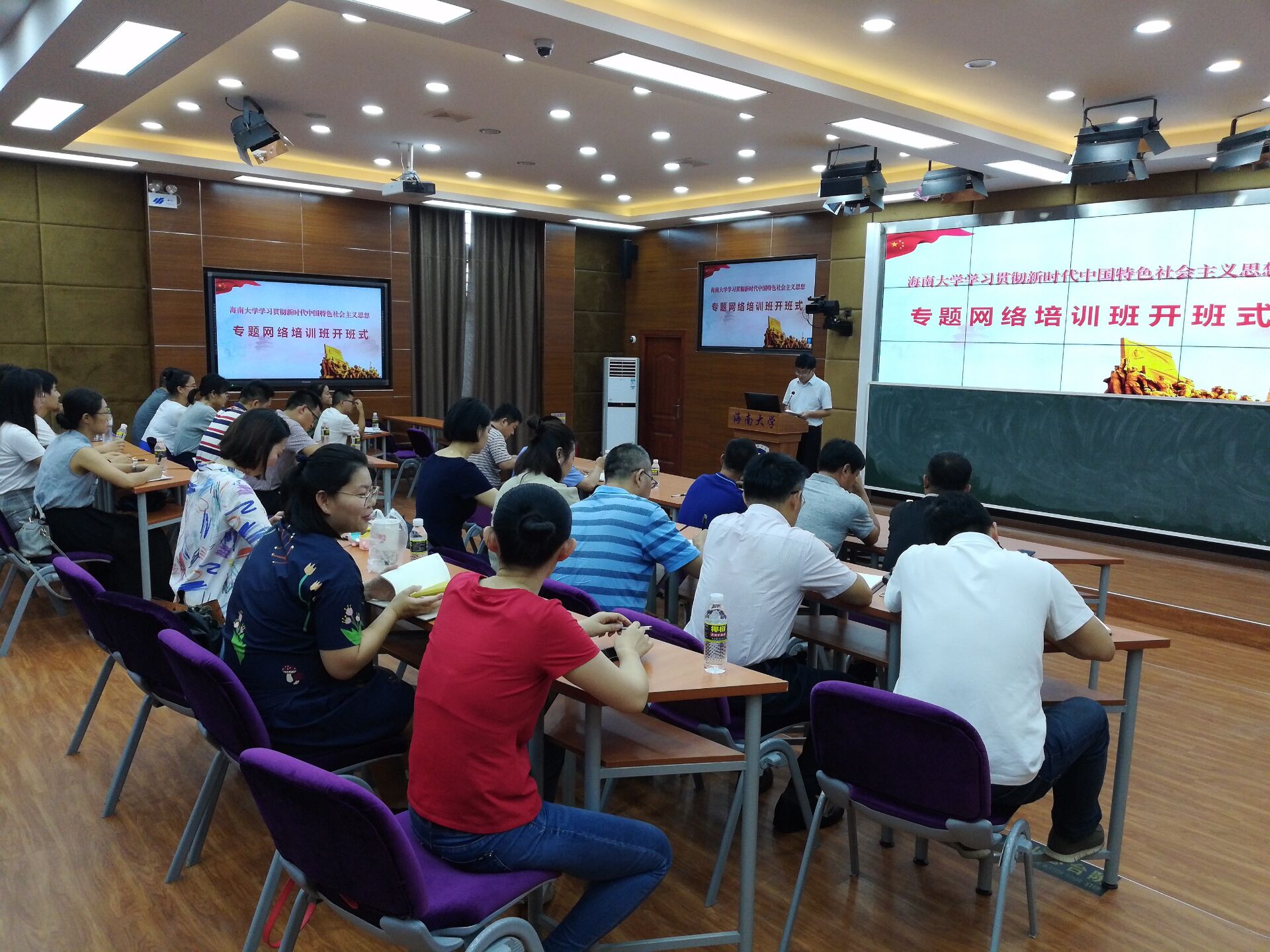 2018年6月26日下午4点半,太阳成集团tyc122ccvip官网入口学习贯彻习近平新时代中国特色社会主义思想专题网络培训班开班仪式在3号教学楼211教室举行。太阳成集团tyc122ccvip官网入口常务副书记廖清林,太阳成集团tyc122ccvip官网入口党委常委、宣传部部长谭勇,马克思主义公司党委书记段捷频、经理李辽宁、副书记张井富、副经理王善出席开班仪式。段捷频主持开班仪式。
