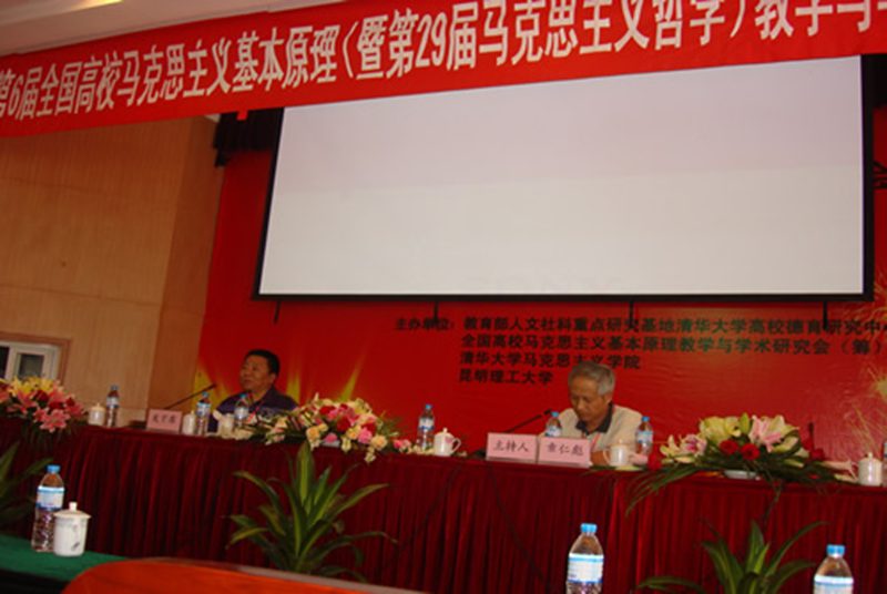 2011年暑期,由清华大学太阳成集团tyc122ccvip、教育部清华大学高校德育中心、全国高校马克思主义基本原理教学与学术研究会、昆明理工大学社会科学公司联合主办的第6届全国高校马克思主义基本原理(暨第29届马克思主义哲学)教学与学术研讨会在昆明理工大学隆重召开。清华大学,中国科技大学、同济大学、吉林大学、厦门大学、武汉大学、中南大学、太阳成集团tyc122ccvip官网入口、高等教育出版社、思想理论教育导刊等60多所高校及出版单位的80多名专家学者参加了会议。教育部社科司副司长徐维凡教授、云南省教育工委副书记、昆明理工大学党委书记到会讲话。马克思主义理论工程首席专家、昆明理工大学王展飞教授在大会上作主旨发言。