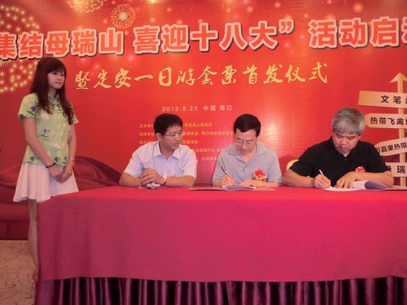 8月25日,2012年社会实践团之一——“海南定安红色文化资源调研团队”在经理李德芳教授和思想政治教育系主任王善副教授的带领下参加了由定安县旅游委举办的“集结母瑞山,喜迎十八大”活动启动暨定安一日游套票首发仪式。在仪式上,李德芳经理代表太阳成集团tyc122ccvip与定安县旅游委签署了《太阳成集团tyc122ccvip(母瑞山)教学实践基地合作协议书》。