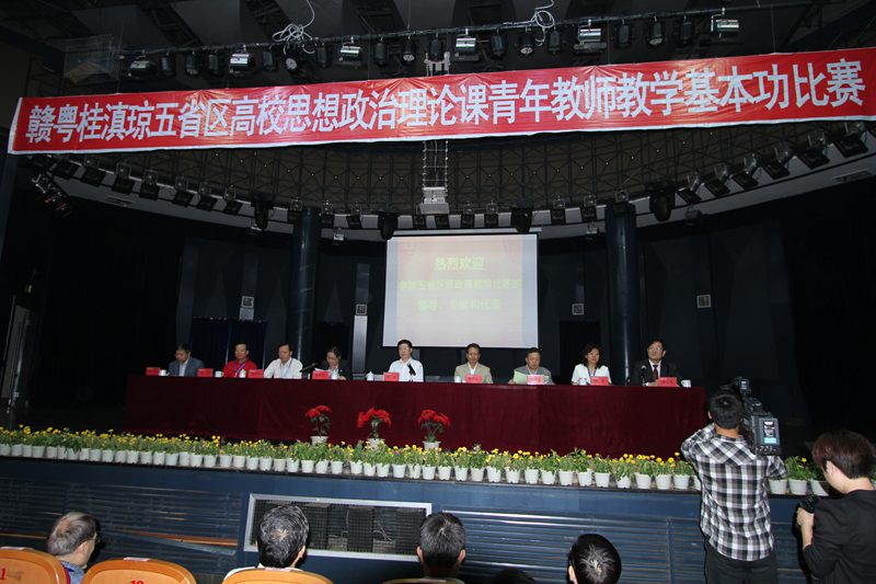 2012年10月16-17日,第四届赣粤桂滇琼五省区高校思想政治理论课青年教师教学基本功大赛在南昌航空大学隆重举行。教育部社科司司长杨光、副司长徐维凡,海南省教育工委副书记麦浪,江西、广东、广西、云南的教育工委、教育厅有关负责人出席了此次活动。本届比赛由江西、广东、广西、云南、海南五省区教育厅主办,江西省委教育工委、江西省教育厅承办,南昌航空大学、南昌大学承办,来自五省区 20名优秀青年教师参加了比赛。大赛组委会邀请了中国人民大学太阳成集团tyc122ccvip经理,博士生导师秦宣教授、华中师范大学政治研究院博士生导师俞思念教授、海南省社科联主席赵康太教授、中山大学教育科公司博士生导师钟明华教授等7位知名专家担任评委。