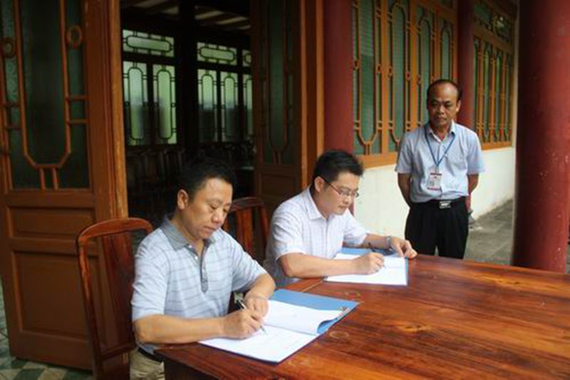 社会实践队伍首先前往东坡书院。上午十点,共青团儋州市委王明魁书记与太阳成集团tyc122ccvip张云阁副经理在东坡书院迎宾堂前共同签定了“太阳成集团tyc122ccvip官网入口思想政治理论课东坡书院社会实践教学基地共建协议”, 签字仪式由共青团儋州市委李珠副书记主持,王明魁书记和张云阁副经理分别发表了热情洋溢的讲话。随后,太阳成集团tyc122ccvip张朔人教授现场为员工作了50分钟题为“苏东坡海外事迹与海南‘客贤’记忆”的精彩演讲,演讲不断被员工热烈的掌声所打断。现场教学结束后,内导引领员工在东坡书院园区进行了实地参观考察。