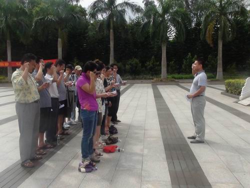 为了庆祝建党九十二周年,进一步增强党支部的凝聚力和战斗力,7月1日上午,公司政治理论二系全体成员和政治理论一系部分特邀嘉宾一行18人前往海口市金牛岭公园参观了解放海南岛战役烈士陵园。在参观期间,党支部书记费秋香老师和系主任贺尧夫老师代表全体成员向烈士纪念碑献花。随后,全体成员在烈士纪念碑前就继承先烈遗志,做好本职工作进行了宣誓。最后,张朔人老师为大家讲解了解放海南岛战役的相关情况。