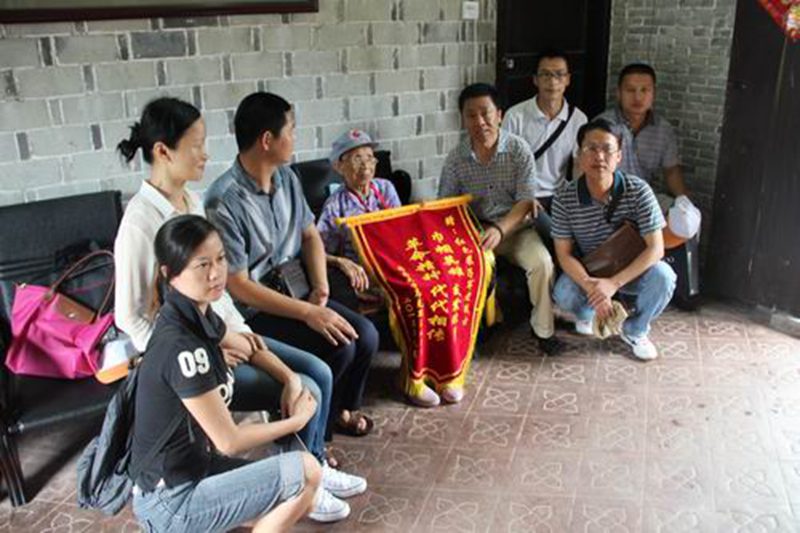 张云阁副经理代表太阳成集团tyc122ccvip向103岁高龄的红色娘子军老战士王运梅赠送了锦旗