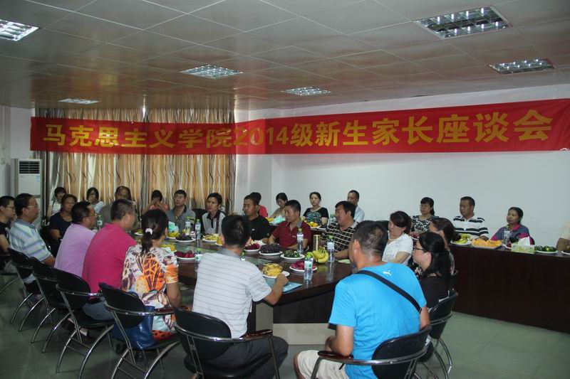 9月12日下午,公司在城西校区教学楼二楼会议召开2014级新生家长座谈会。校员工工作处副处长、城西校区管委会副主任陈楠昕,公司党委书记段捷频,思想政治教育系主任王善、教研办本科生负责人文金霞、新生班主任陈招万出席,20余位家长参加座谈会。座谈会由张君成老师主持。