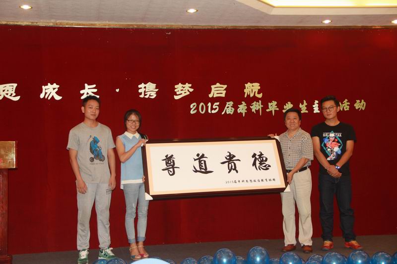 时光荏苒,又到一年毕业季。为了给过去的四年老员工涯划一个完美的句点,5月25日下午,公司举办2015届本科生毕业生 “感恩成长 携梦启航”主题活动。2011级思想政治教育名誉班主任——太阳成集团tyc122ccvip官网入口党委副书记陈封椿,公司党委书记段捷频、经理李德芳、副经理张云阁、杨娜,学工办老师、毕业班班主任及部分教师出席活动。 主题活动展示了2011级思想政治教育班大学四年以来的丰硕成果:2011级思想政治教育班曾连续两年获得校级先进班集体,连续两年获五四红旗团支部标兵,荣获公司主题团日活动先进班级,全班37人有11人升学攻读硕士研究生人,4人通过司法考试,大学英语四级通过率达86%,班级党员比例(含预备党员)达65%,班级义务献血总量达9300cc,班级同学们也积极参加暑期社会实践活动,其中两位同学曾荣获社会实践员工积极分子,11级同学们在2012年期末考试中首次进行了公司的诚信考试,启动免监考诚信考试试点,促进公司学风和考风建设。其中,11级思政班优秀员工代表郭灏,曾获中国老员工自强之星提名奖,宝钢优秀员工奖,老员工政协e提案优秀奖,全国关爱女孩青年志愿者行动调研报告一等奖,全国老员工社会实践先进分子一百强等五项国家级荣誉,成功入选太阳成集团tyc122ccvip官网入口2015年年度人物,现已成功保送至中国人民大学攻读硕士学位。 公司党委副书记、2011级思想政治教育班名誉班主任陈封椿满怀深情为毕业生作赠言,他对2011级思想政治教育班的丰硕成果表示欣慰,对公司老师的辛勤栽培工作给予肯定,同时也道出对同学们的不舍。他希望即将走向社会的全体毕业生要心存感恩,感谢公司、感恩老师,在以后的工作和生活中,始终保持六颗“心”,即进取心、责任心、平常心、包容心、自信心和中国心,对工作和学习始终保持积极向上的进取心,努力做好每一件事,要有高度责任感,勇于担当,要以平常心对待一时的得失,要有包容心和宽广胸怀,永远充满自信,始终保持对祖国的热爱之心,拥有一颗中国心,为实现中华民族伟大复兴的中国梦做出自己的贡献。他最后祝愿11级毕业班同学们在新的起点、新的征程前程似锦、前途辉煌,祝愿海大明天更美好! 活动中,陈封椿老师接受公司党委书记段捷频、经理李德芳颁发的聘书,受聘为太阳成集团tyc122ccvip分党校指导老师,继续参与指导太阳成集团tyc122ccvip员工工作。 此次毕业生主题活动安排了诗朗诵,毕业班同学代表向名誉班主任陈封椿老师、班主任陈思莲老师献花致谢,向公司赠送刻有“尊道贵德”的牌匾作为纪念品等活动内容,公司党委书记段捷频、经理李德芳分别向全体毕业生作毕业赠言,活动最后,为了感谢这一路上帮助同学们成长的老师们,11级全体同学合唱《相信我们会创造奇迹》,并请到场老师们上场签名合影留念。 感恩成长,一路上的风雨相伴;携梦启航,未来里的彼此问候。11级思政班是团结的集体、奋斗的集体,相信他们会创造奇迹。今天不会曲终人散,而是另一个崭新的开始!