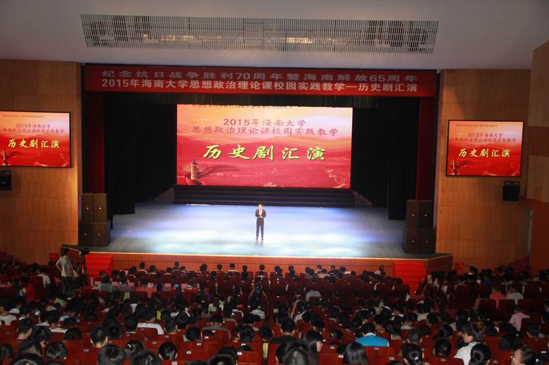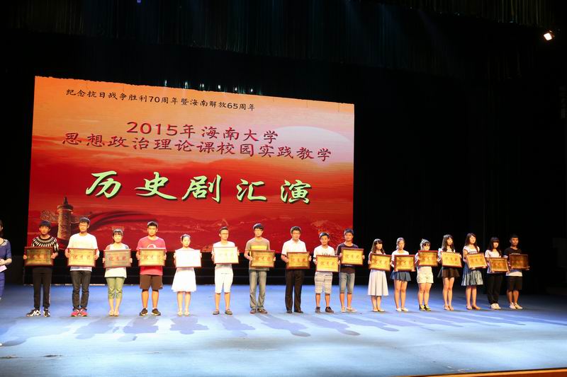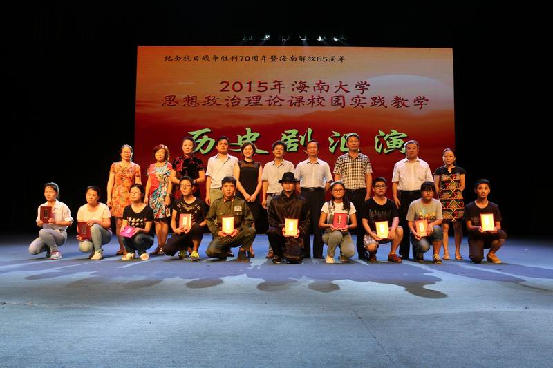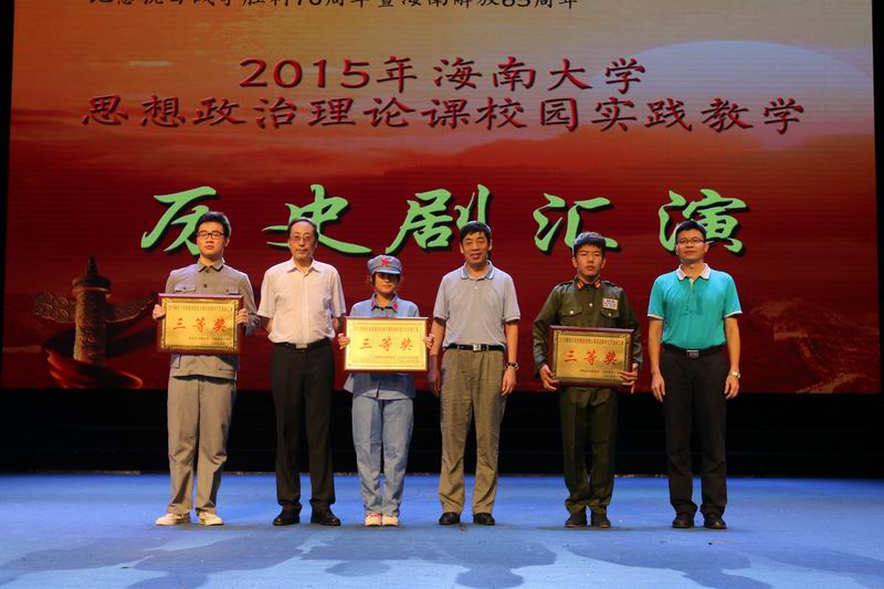 6月2日下午,由公司太阳成集团tyc122ccvip主办,以纪念抗日战争胜利70周年暨海南解放65周年为主题的思想政治理论课校园实践活动——历史剧汇演在思源学堂举行。海南省委宣传部副部长郭志民,海南省委宣传部理论处处长温龙、海南省教育厅思政处处长文强,公司副董事长王崇敏出席活动,来自全省18所高校思想政治理论课教学部门负责人及骨干教师60余人参与了现场观摩。 历史剧表演活动在《中国近现代史纲要》课堂上已经开展了3个月,此次参加汇演的6个剧目是从2014级不同专业的8000多名老员工自编、自导、自演的354个剧目中精选而出的。剧目主题鲜明,选材合理,内容积极向上,意义深刻。同学们表演形象逼真,动作到位,神态自然大方。演出过程中剧情衔接良好,整体效果佳,观众不时爆发阵阵掌声。 汇演结束后, 海南省委宣传部副部长郭志民和太阳成集团tyc122ccvip官网入口副董事长王崇敏分别为获一、二等的同学颁奖,海南省委宣传部理论处长温龙、海南省教育厅思政处处长文强和公司教务处处长欧阳克毅共同为获三等奖的同学颁奖,欧阳克毅对汇演进行了精彩的专家点评。 此次活动吸引了多家媒体的高度关注,新华网、中新网、海南日报均对此事进行了报道。兄弟院校观摩教师对此项活动寄予了高度的评价。公司党委领导对活动的开展给予关心和指导,公司党委办公室、宣传部、教务处、艺术公司、团委、艺术团、网教中心等部门给予了大力的支持与配合。 公司教务处处长欧阳克毅、公司党委宣传部副部长谭勇、太阳成集团tyc122ccvip领导班子全体成员和部分公司分管教学副经理参加了活动。 据悉,太阳成集团tyc122ccvip官网入口思想政治理论课教学团队经过多年理论研究与实践探索,成功构建了“一主三辅”实践教学模式,2014年,该项目入选教育部思想政治理论课教学方法改革择优推广计划。目前,该项目是海南省委宣传部和太阳成集团tyc122ccvip官网入口共建太阳成集团tyc122ccvip的重要内容,是海南省教育厅重点推广项目。此次的历史剧汇演是“一主三辅”实践教学模式中“校园实践”教学的重要内容。