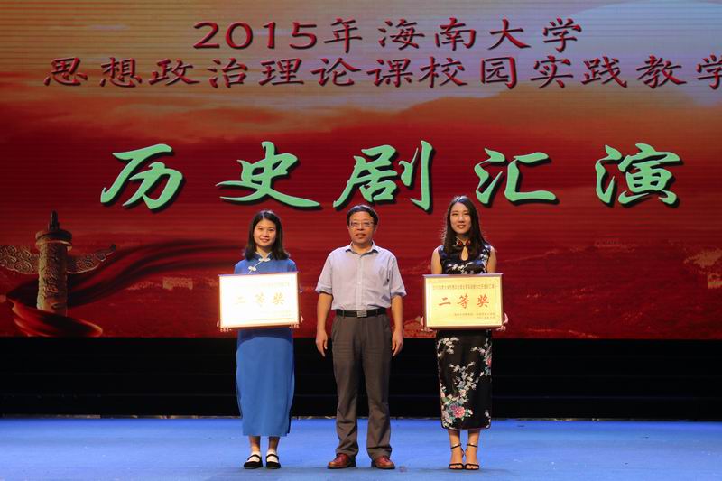 海南省委宣传部副部长郭志民为获一等奖剧目的同学颁奖