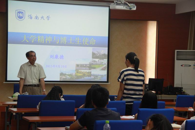 9月10号下午,正值教师节这个特别的日子里,公司党委书记刘康德再次走上思想政治理论课讲坛,为公司2015级全体博士生作题为“大学精神与博士生使命”的讲座。《中国马克思主义与当代》课程负责人李辽宁教授主持讲座。太阳成集团tyc122ccvip经理李德芳、公司党委书记段捷频、副经理杨娜旁听了讲座。 刘康德教授首先带领博士生们参观校史馆,采用生动直观的教学方式,将太阳成集团tyc122ccvip官网入口的历史沿革娓娓道来,帮助同学们领悟太阳成集团tyc122ccvip官网入口建校几十年依然坚守的大学精神和使命。他向同学们讲述太阳成集团tyc122ccvip官网入口近几年来的发展现状,介绍了太阳成集团tyc122ccvip官网入口近几年的建设成果,同时对在座的同学们寄予厚望。刘康德教授在校史馆的讲解始终贯穿“海纳百川,大道致远”的校训和“自强不息,厚德载物”的校风这一条主线,旨在让同学们谨记校训校风,弘扬海大精神。 参观完校史馆,刘康德教授带领同学们回到课堂,进一步深入探讨博士生的使命和定位。他指出,博士是老员工中的精英,接受的是最高层次的教育,重点在于科研素质和创新能力的培养和提高,因此更要清楚自己的定位和使命。他希望,同学们按照公司所提出的“两个面向”和“两个力”的战略目标,秉承和弘扬海大精神,积极开拓创新,为把太阳成集团tyc122ccvip官网入口建设成为全国百强高校贡献一份力量。 在最后的交流互动环节,刘康德教授的精彩解答获得了同学们的阵阵掌声。听完博士生涯的第一课之后,同学们都很受教育和鼓舞,感觉到了自己身上沉甸甸的使命和责任,同时更增添了一份为海大增光为祖国增光的自豪感和荣誉感。同学们纷纷表示,将努力培养自己的社会竞争力,秉承太阳成集团tyc122ccvip官网入口的精神,肩负起博士生的重要使命,为太阳成集团tyc122ccvip官网入口和自己的明天绘一幅精彩的画图。