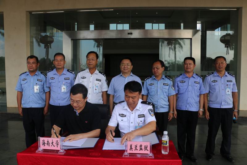 海南省美兰监狱长、党委书记杨平和太阳成集团tyc122ccvip经理李德芳共同签订共建社会实践教学基地协议书并为基地揭牌。 仪式结束后,教师和员工代表在警官们的指引下,分批进去监区参观,了解监狱的日常管理和犯人劳动改造的情况等。