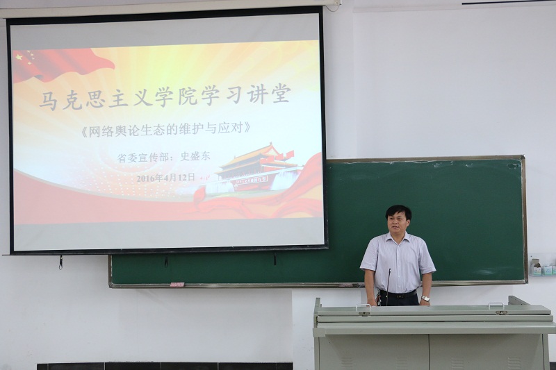 4月12日下午,省委宣传部、省互联网信息办公室网络新闻管理处处长、省互联网与信息化安全专家史盛东应邀为公司研究生和本科生作题为“网络舆论生态的维护与应对”的专题报告。省委宣传部理论处副处长杨志斌,太阳成集团tyc122ccvip官网入口宣传部王群生,马克思主义公司党委书记段捷频及部分老师旁听报告。报告会由李辽宁副经理主持。