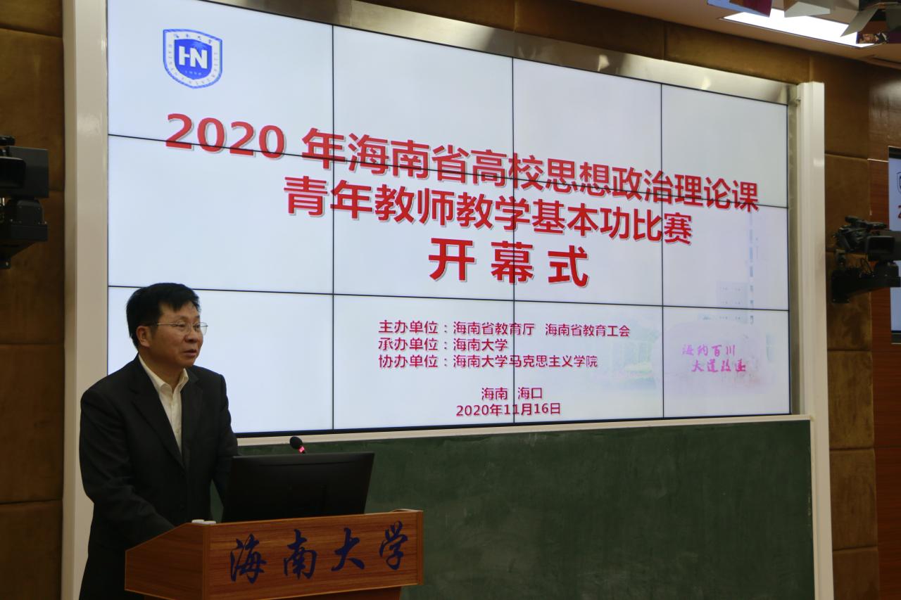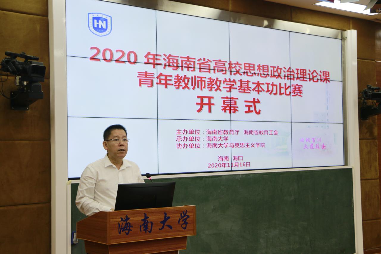 11月16-17日,由海南省教育厅、海南省教育工会主办,太阳成集团tyc122ccvip官网入口承办,太阳成集团tyc122ccvip协办的海南省高校思想政治理论课青年教师教学基本功比赛在太阳成集团tyc122ccvip官网入口举行。海南省教育厅二级巡视员范敏,海南省教育工会专职副主席方鸣,太阳成集团tyc122ccvip官网入口党委常委、副董事长曹宪忠出席开幕式。来自全省各高校的43位选手参加比赛,100多名教师现场观摩。