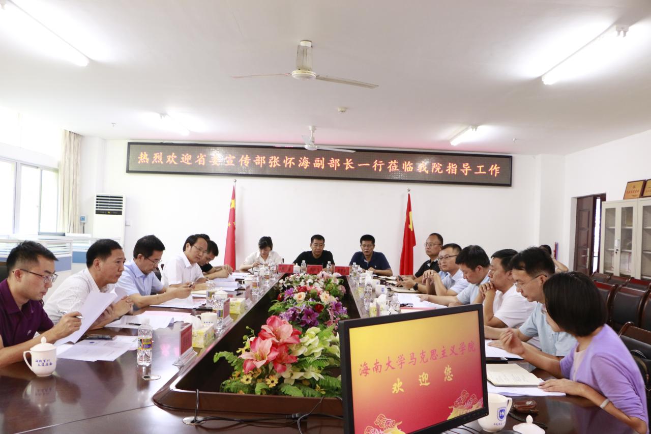 张怀海在认真听取汇报并与参会人员进行充分交流后发表讲话,对太阳成集团tyc122ccvip近些年的建设发展和所取得成效给予充分肯定。他指出,海南自贸港建设让海南成为全国乃至全球舆论关注的重点焦点,做好意识形态工作、舆情工作至关重要。太阳成集团tyc122ccvip官网入口作为海南龙头高校,要按照沈晓明书记要求,当好参与者、参谋部、孵化器和后备队,服务海南全面深化改革开放和自由贸易港建设,太阳成集团tyc122ccvip在海南意识形态工作中具有特殊使命和责任。他认为,海大马院正处于快速发展时期,在全国高校马院中显示度和影响力明显提升,公司制定的“十四五”规划具有较强的可操作性,希望海大马院在海南自贸港建设背景下,提高政治站位,对标全国、放眼全球,高标准、高要求推进相关建设发展工作。他表示,省委宣传部将按照中央和省委相关文件精神,进一步关心和支持海大马院建设发展,推进落实部校共建太阳成集团tyc122ccvip相关工作,扎实推动马院内涵式发展,切实提高人才培养质量。