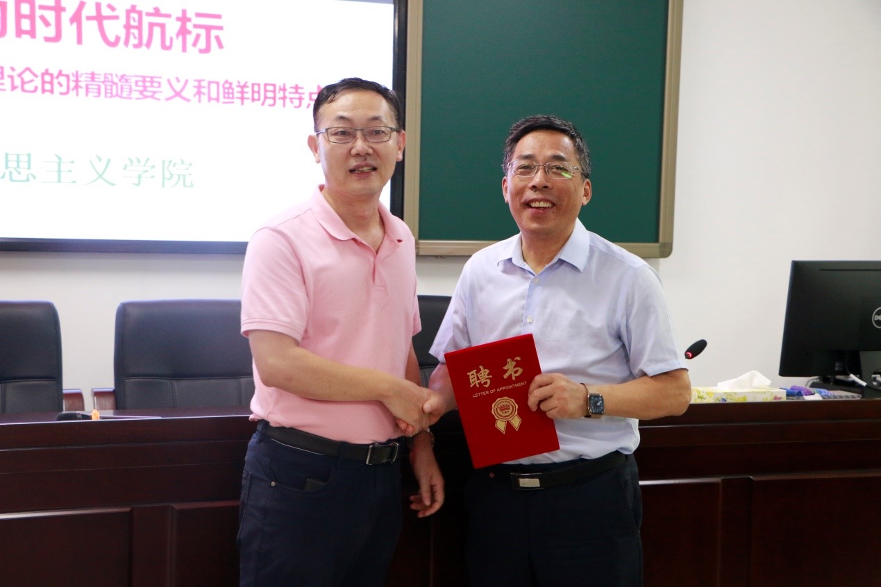 9月29日上午,2021-2022学年冬季小学期系列讲堂第一讲在社科楼A309举行。南京师范大学王永贵教授应邀为公司员工作以“习近平总书记文化强国理论及鲜明特点”为主题的学术报告,副经理吴朝阳出席报告会并为王永贵教授颁发太阳成集团tyc122ccvip官网入口“冬季小学期授课外聘专家”证书。
