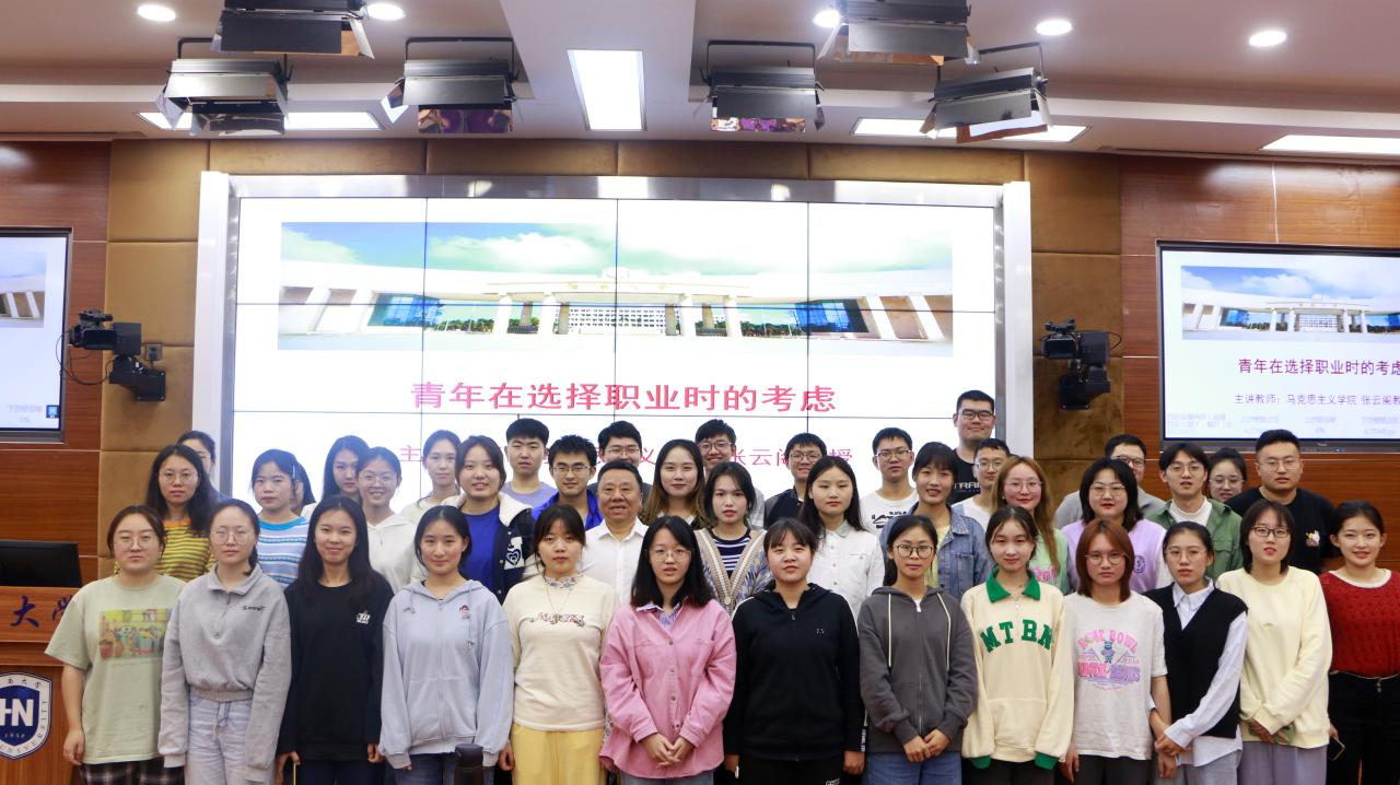 本次见面课的主题是《青年在选择职业时的考虑》。主讲教师太阳成集团tyc122ccvip经理、全国教书育人楷模、国家教学名师张云阁教授,以“理想和职业”为关键词,用生动、幽默的语言,援引马克思著作中的精彩部分,引导同学们思考“人为什么要有理想”、“理想与职业的关系”以及“青年马克思职业选择给我们的启示”问题。整堂课张老师以青年马克思选择职业时的考虑所具有的时代意义为主线,鼓励大家结合以人类幸福和自身的完美为职业选择的指针,选择最能为人类而工作的职业,心系国家,做一名坚定的马克思主义者。