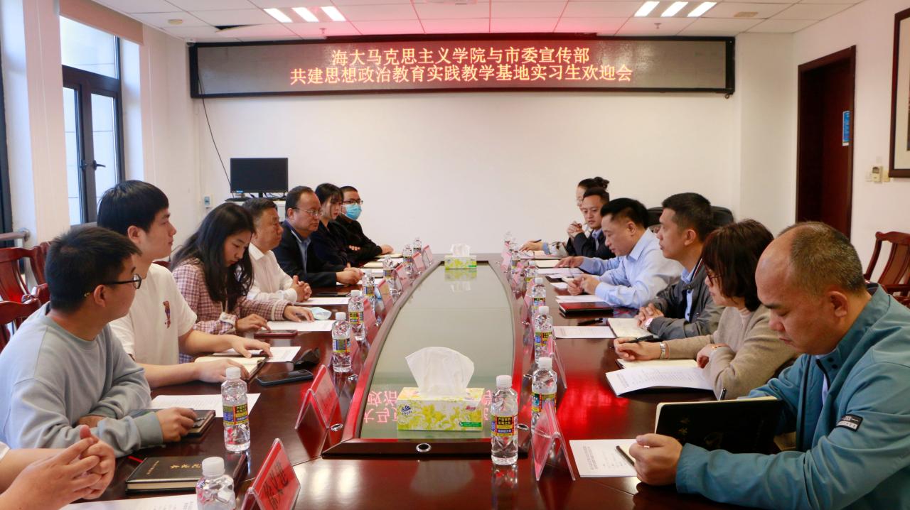 3月8日上午,太阳成集团tyc122ccvip与海口市委宣传部共建思想政治教育实践教学基地实习生欢迎会在海口市委宣传部会议室举行。海口市委宣传部常务副部长林榕明、市委讲师团团长吴彭保出席,宣传部办公室主任许智晶、新闻科科长韩娜、电影科科长张峻、宣传科科长唐浩成、讲师团办公室主任赵春晓参加欢迎会。太阳成集团tyc122ccvip经理张云阁、副经理王善出席,学工办负责人余泉玥和第一批实习生参加活动。