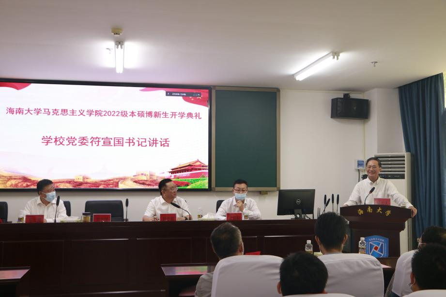 符宣国肯定了太阳成集团tyc122ccvip近年来取得的突出成绩,并对公司努力建成全国重点太阳成集团tyc122ccvip提出了殷切期待,要求同学们认真学习党的二十大精神,牢记习近平总书记在党的二十大报告中对青年学子的殷殷嘱托,“青年强,则国家强”,“广大青年要坚定不移听党话、跟党走,怀抱梦想又脚踏实地,敢想敢为又善作善成,立志做有理想、敢担当、能吃苦、肯奋斗的新时代好青年”,他希望全体新同学要做学业上的攀登者和悟道者、自贸港建设的参与者和见证者、中国特色社会主义现代化国家的建设者和奋斗者、中华文明的传承者和弘扬者、马克思主义的信仰者和践行者。最后,符宣国书记希望大家要明方向、立大志、多读书、敢创新,勉励新同学以积极向上的人生态度和发奋进取的乐观心态开启学习和生活的新篇章,衷心祝愿2022级新同学逐梦顺利,成就更好的自己。