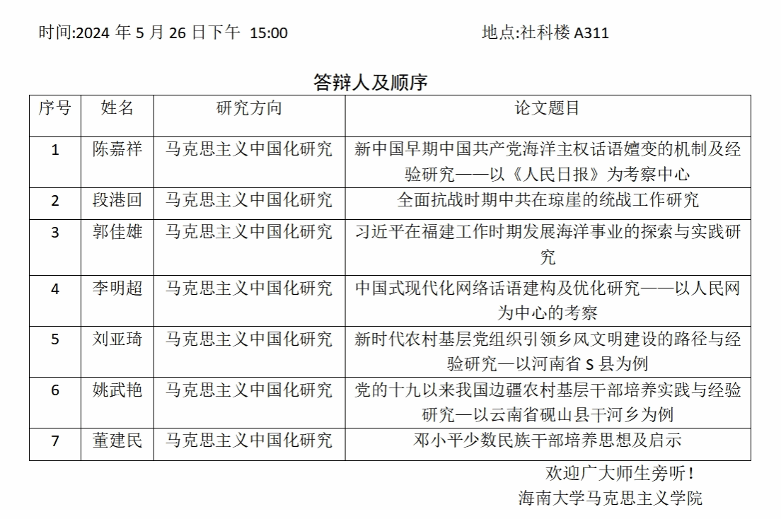 太阳成集团tyc122ccvip官网入口2024届(上)研究生学位论文答辩公告(五)