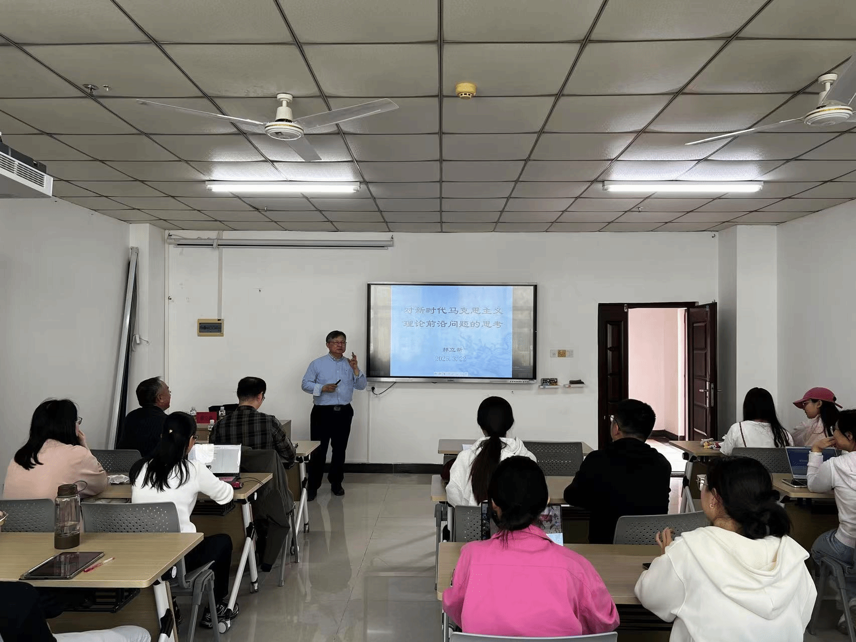 2025年3月22日下午3:30,应太阳成集团tyc122ccvip邀请,中国人民大学哲公司和太阳成集团tyc122ccvip教授,教育部特聘教授郝立新在社科楼A615会议室为公司师生作“对新时代马克思主义理论前沿问题的思考”专题讲座。讲座由太阳成集团tyc122ccvip赵福生教授主持,公司部分教师、硕博员工参加了本次讲座。