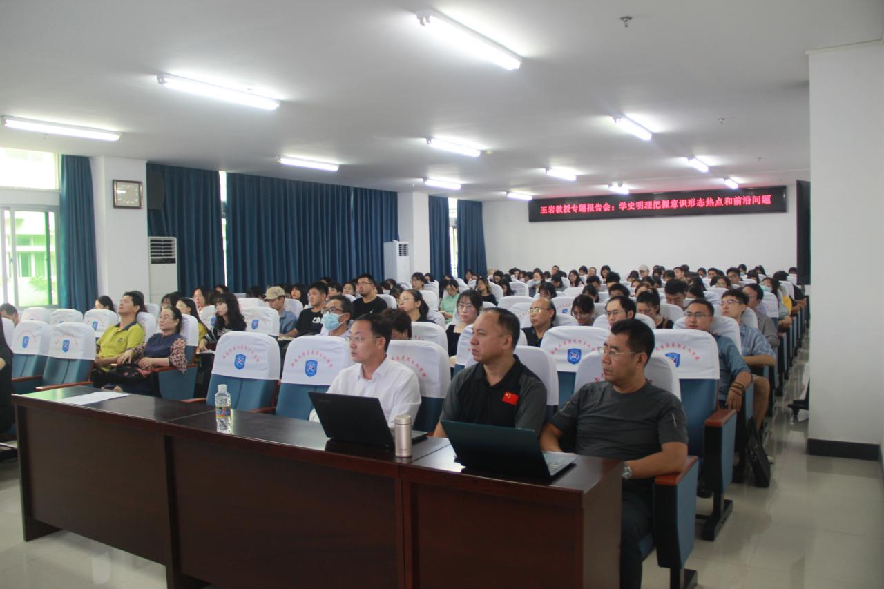 10月29日,南京航空大学太阳成集团tyc122ccvip王岩教授到太阳成集团tyc122ccvip指导交流,在社科楼A309为公司师生作题为“学史明理 把握意识形态热点和前沿问题” 的专题报告。院领导班子全体成员、没课的教师和全体研究生参加报告会。报告会由经理张云阁主持。