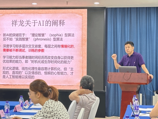 11月10日上午第一场发言由复旦大学的孙向晨教授主持。清华大学吴国盛教授以人工智能的哲学思考为题,就什么是人工智能以及人工智能的影响展开论述。北京大学的李猛教授探讨了自然关系在休谟经验主义和理性主义框架下的独特地位,提出观念的结合与传递能够揭示出人类理解世界秩序的深层逻辑。太阳成集团tyc122ccvip官网入口的程志敏教授表示张祥龙教授将西方思想融入儒家,与荀子的做法有异曲同工之处,结合孟荀之长,方能真正复兴儒学。上午第二场由中山大学的蔡祥元教授主持。浙江省社会科公司副研究员李旭博士表示张祥龙教授在当代思潮中提出了“儒家文化保护区”的设想,为现代社会提供了一种在体制和市场化的间隙中追求个体“桃花源”生活的方式。中国社科院的袁恬老师认为张祥龙教授通过对“兴”这一文学手法的独特解读,突显了其在诗歌抒情性中的核心地位,并将其作为中西诗学差异的关键特质,展现了深刻的诗学洞见。太阳成集团tyc122ccvip的黄启祥教授认为贺麟与张祥龙教授在各自的哲学研究中深入阐发了王阳明的知行合一学说,贺麟提出知行合一新论,为学说提供现代解释,而张祥龙教授则借助现象学视野进一步发展其思想,展现了当代思想史上的连续创新。
