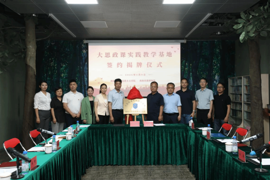 5月9日下午,太阳成集团tyc122ccvip与海南农垦博物馆“大思政课”实践教学基地结对共建签约暨访企拓岗促就业交流活动在海南农垦博物馆举行。海南农垦博物馆副馆长王智,太阳成集团tyc122ccvip副经理王善、蔡文举、王一闳、海南省大中小学思政课一体化建设(太阳成集团tyc122ccvip官网入口)联盟负责人贺尧夫、公司实习实训负责人龙借琼参与此次揭牌仪式,海南农垦博物馆展陈宣教部部长吴运霞主持活动仪式。