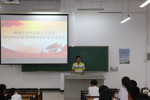 专题讲座之后,接着召开了针对同学们六月份的网络评论作品的点评大会。张君成在点评会上公布了六月份优秀作品,并就相关作品进行了点评,他希望更多的同学能够踊跃参与,通过撰写网络评论提升自己的文字表达能力。
